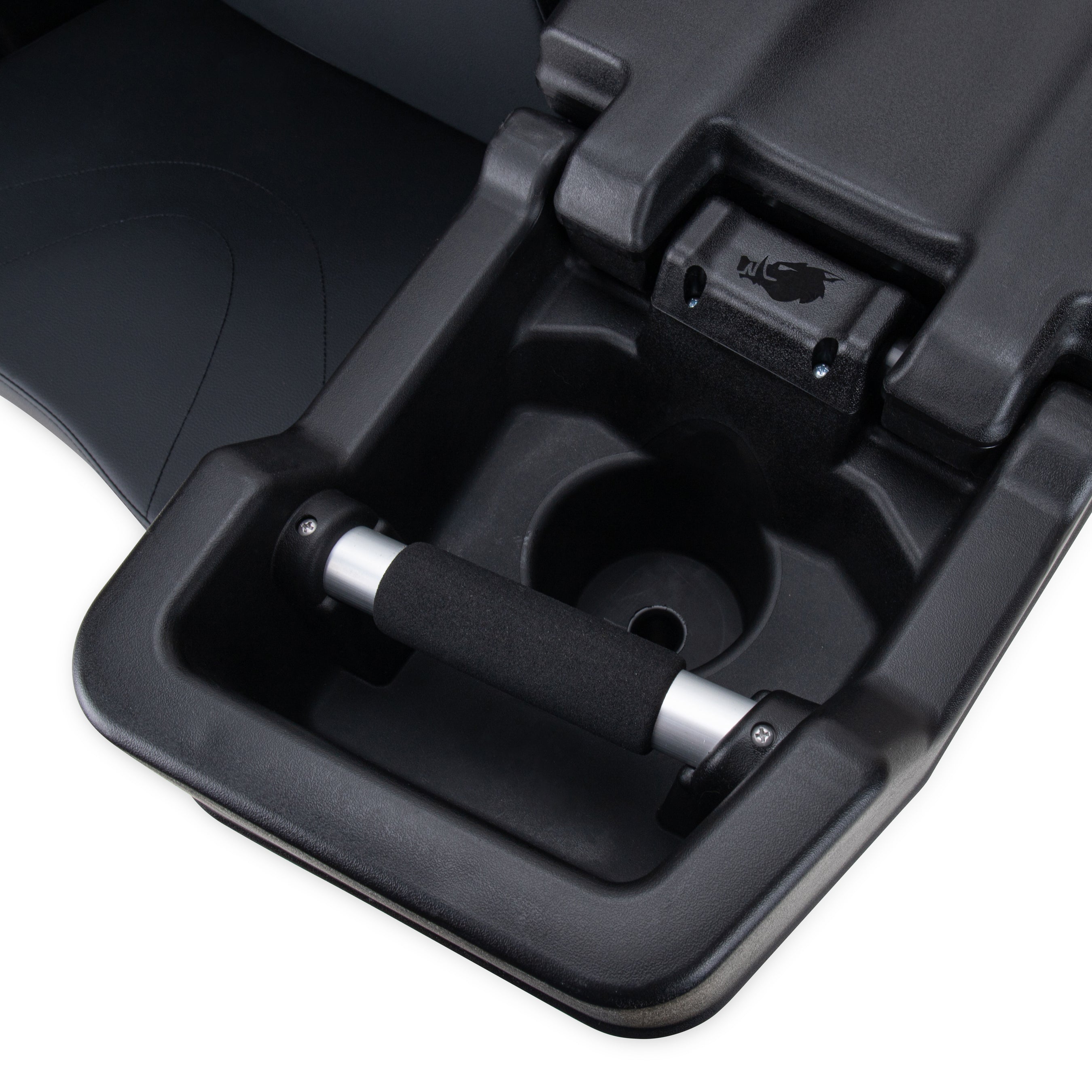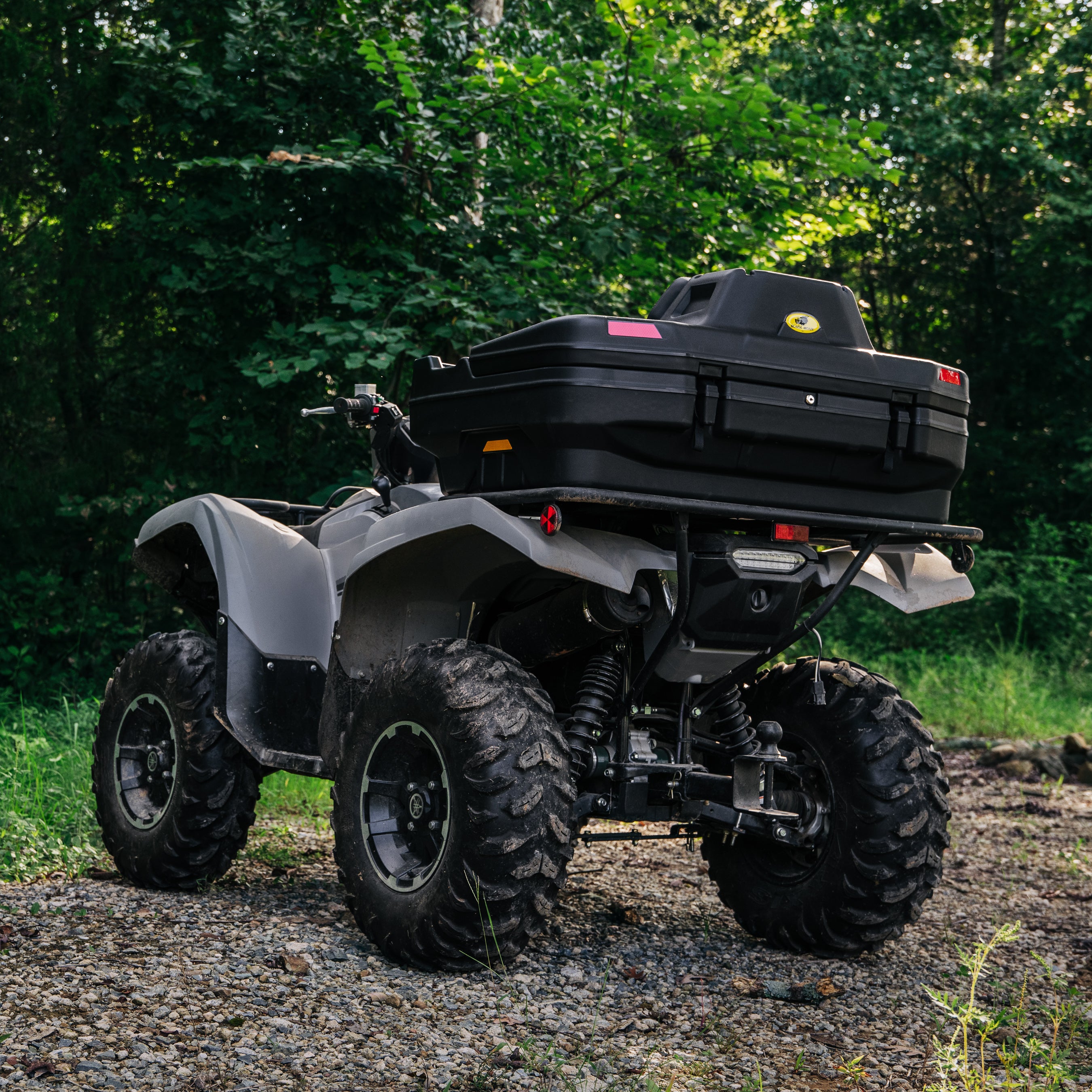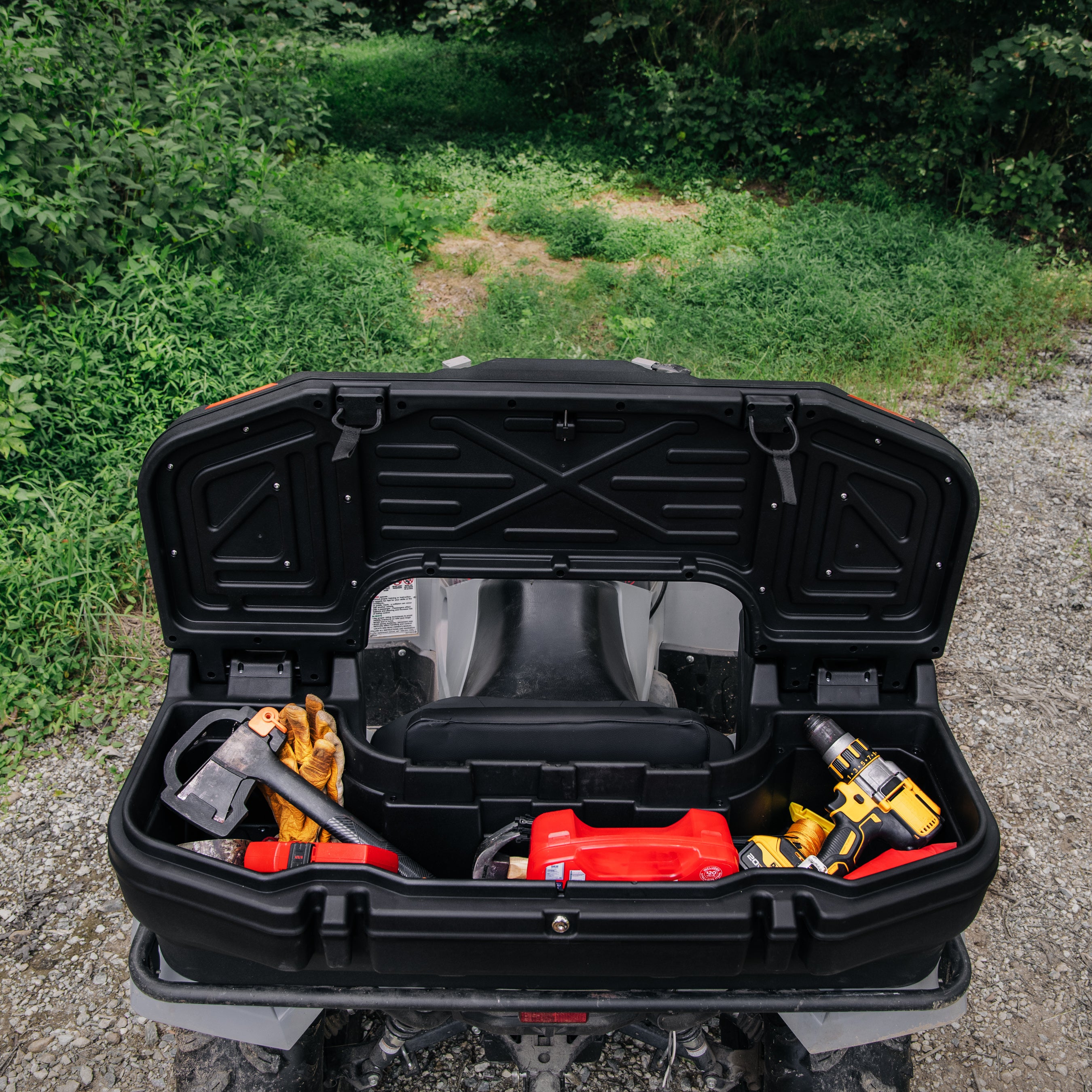 Store your belongings in two (2) spacious ATV cargo boxes, offering ~2 ft3 of space. The lower bin is lockable, providing 1 ½ ft3 of sealed storage. An upper bin offers ½ ft3 of storage that can be reached while seated on your ATV. Also equipped with an integrated stainless steel lock and keys to keep your belongings safe.